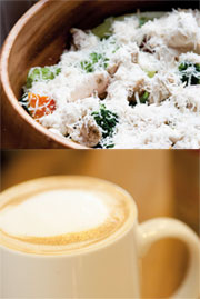 一日之計在於晨,所以早餐格外重要。店主特別推薦廣受年輕女性青睞的地中海早餐「迷迭香煎鮑魚菇」。這個主餐當然也是現作,是由鮑魚菇、地中海燴菜、太陽蛋、馬鈴薯泥、黑裸麥麵包以及羅勒醬所組成的地中海式早餐。考量到外食族群很少攝取蔬果,因此主餐的地中海燴菜只用了黃椒、紅椒、茄子、牛蕃茄和節瓜等五種蔬果,並以鮑魚菇代替肉食,融合了豐富的纖維質及天然維生素,是一份營養價值很高的輕食早餐,連喜愛素食者也可以食用,讓一天從均衡的營養開始。